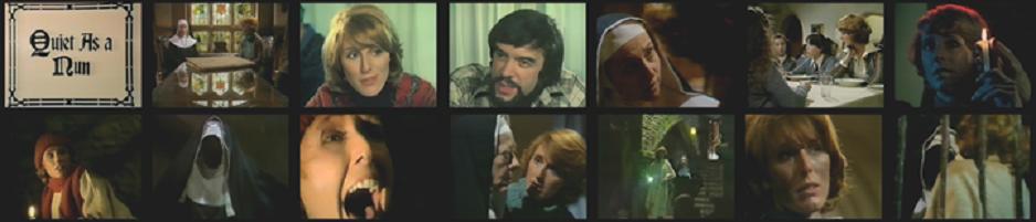 The series continued with "The Girl Who Walked Quickly", the story of a young man kidnapped by terrorists who "program" him through brainwashing to bomb various London targets without his conscious knowledge. However, it was with the next serial "Quiet As A Nun" that the series really hit its peak. Relating the investigations of a famous tv journalist/presenter, it sees Maria Aitken as 'Jemima Shore' return to her old school, The Convent Of The Blessed Eleanor. There she surreptitiously looks into the apparent suicide of one of the nuns, who was in fact an heiress who was planning to donate the convent to an infamous left wing organisation. Miss Shore finds many things amiss at her old school, with rumours of murder and persistent tales of a menacing apparition dubbed by the girls 'The Black Nun'... whom Jemima soon has the misfortune to encounter (click here to relive this classic moment).